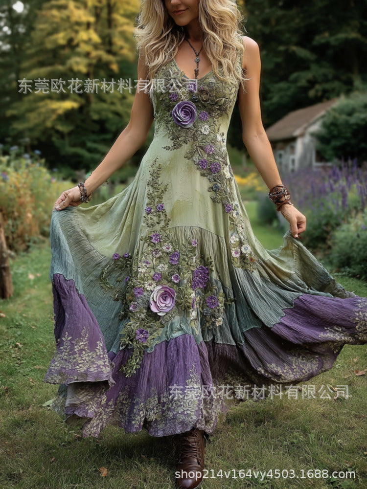 Plus Size Women's Loose All-match Deep V-neck Sleeveless Dress